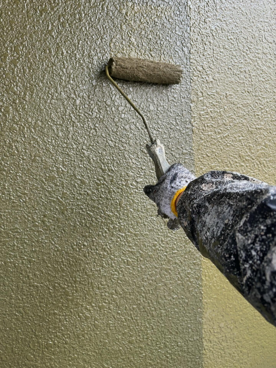外壁塗装の中でも、「プレミアムシリコン」を使用した上塗り作業